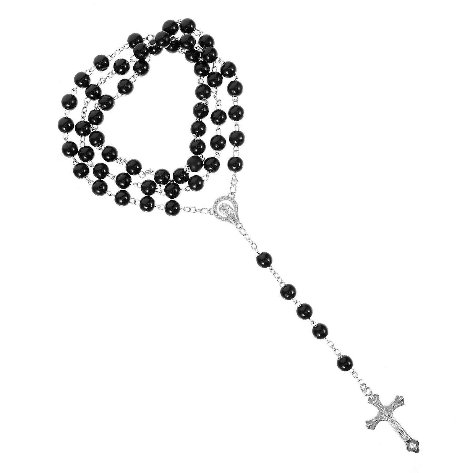 Jesus Cross Pendant Necklace Rosary Black Glass Pearl Necklace 3Pcs for Decor