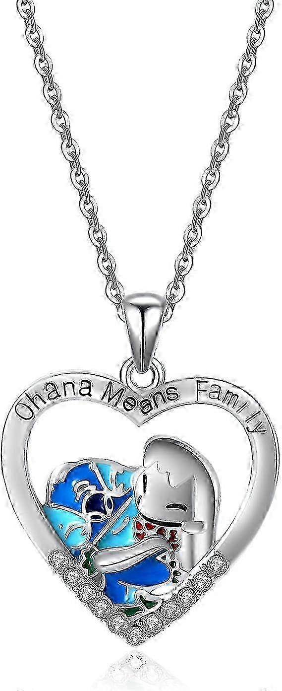 Stitch Necklace Silver Plated Crescent Half Moon Pendant Necklaces Stitch Ohana Means Family Jewelry Gift for Women Girls New Arrival