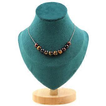 Necklace 10 Tiger Eye beads Mix colors 8 mm Stainless steel chain