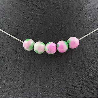 Necklace 5 pearls Pink green jasper 8 mm Stainless steel chain