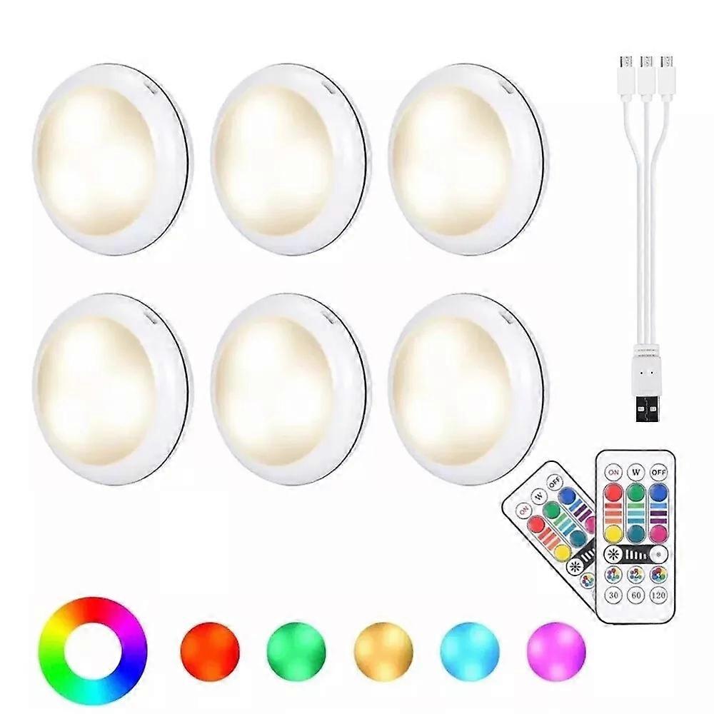 USB Rechargable RGBW LED Cabinet Light Puck Lamp 16 Colors Timmer Remote Under Shelf Kitchen Counter Lighting