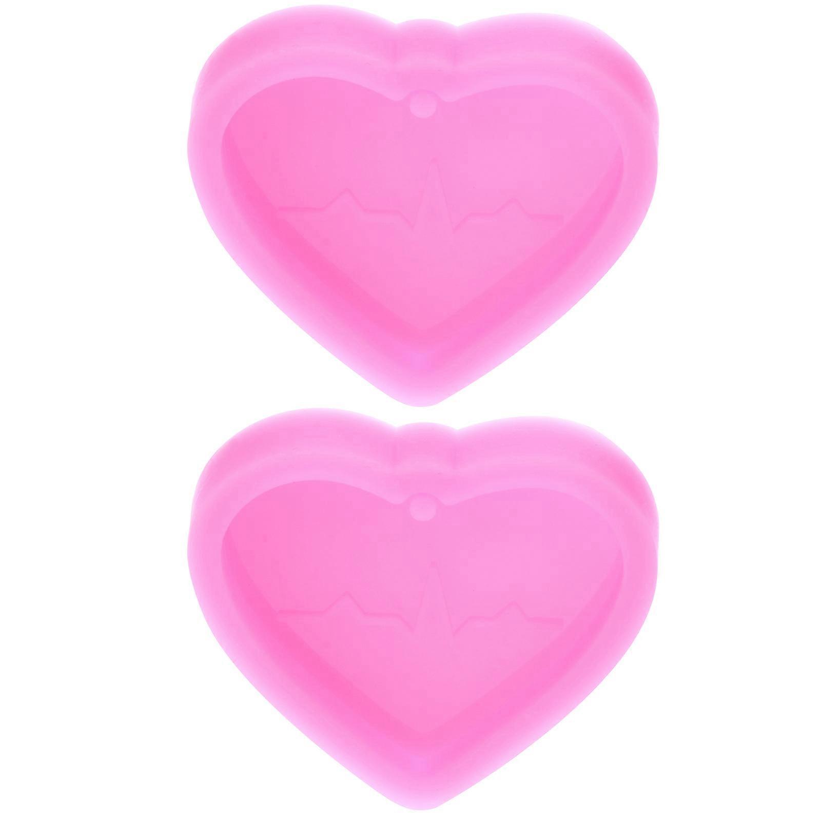 Diy Epoxy Molds Heart-Shaped Pattern for Craft Making Pink Silicone Mold 2Pcs