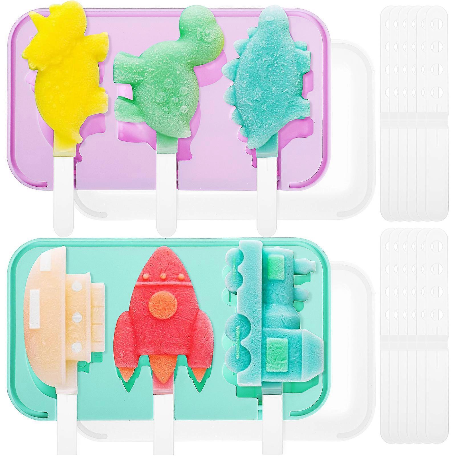 2Pcs Ice Cream Molds Vehicles Animals Shape Reusable Silicone Ice Making Moulds with Handle Lid