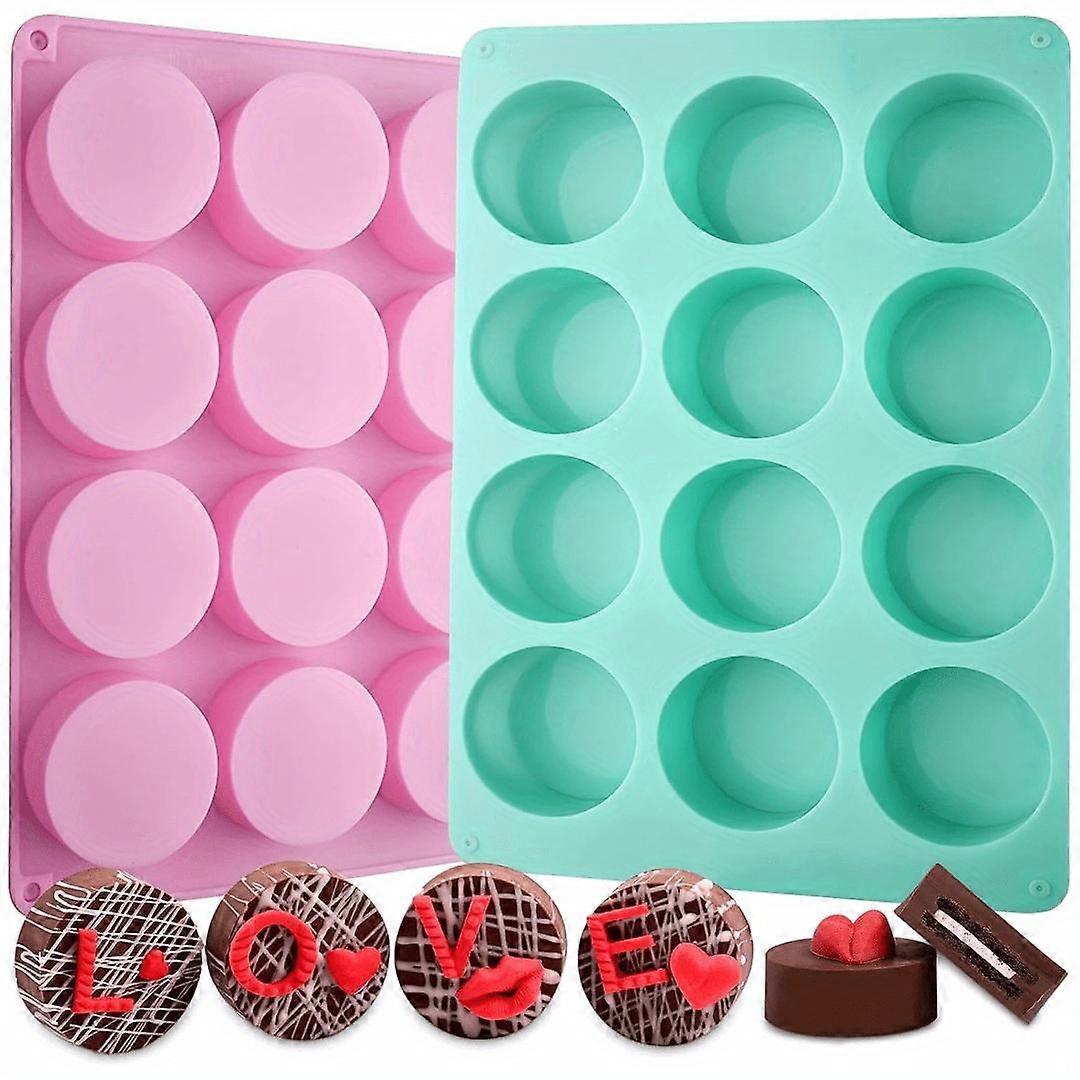 2Pcs Round Chocolate Cookie Resin Molds, New Size 12-Cavity Cylinder Chocolate Cover Cookie Silicone Molds For DIY Making Candy Mini Cakes Jelly Bakin