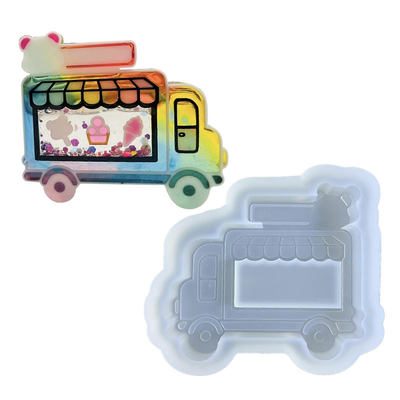 DIY Bear Dessert Cart Ornament Quicksand Silicone Epoxy Mold DIY Keychain Pendant Jewelry Craft Mould for Birthday Gift Multicolor
