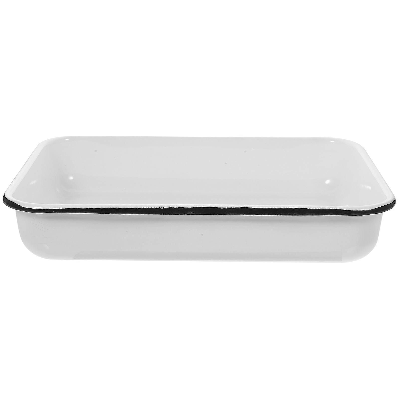 Description A baking tray made of stable enamel. It is delicately made, and the surface is smoothly polished, which is very durable. Enamel material conducts heat quickly, reducing your baking time. Suitable for families, and also for outside restaurants, coffee shops, afternoon tea shops, etc. Features -Color:White -Material:Enamel - Size: 35.00X24.50X6.50cm/13.76X9.63X2.55in -Note:there may be flaw -Rim color: random color - Made of enamel, durable, and can be used for a long time. Perfect for everyday baking, cooking or kitchen storage - Multifunctional storage Tray is stable material, safe and . It can be used for various purposes such as baking trays, fruit bowls, and storage trays - Excellent thermal conductivity, shorten the time of food preparation and save you time - Can be used in a wide range, not only for family use, but also for use in outside shops, such as western restaurants, coffee shops, afternoon tea shops, etc - Heat-resistant, does not rust, and is easy to clean. Of course, you can also choose to wipe it with a cloth to cleanPackage list: 1 x Baking Pan
