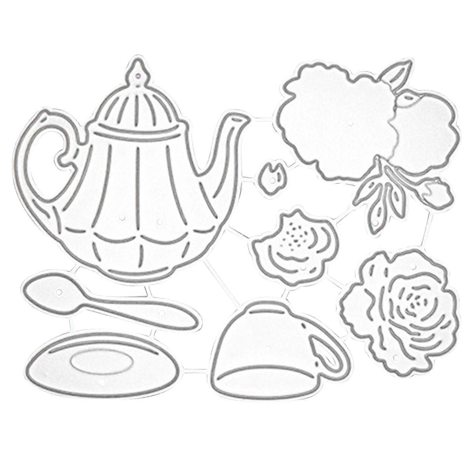Cutting Mold Teacup Flower Pattern Educational Carbon Steel DIY Scrapbooking Card Decorative Template for Kids