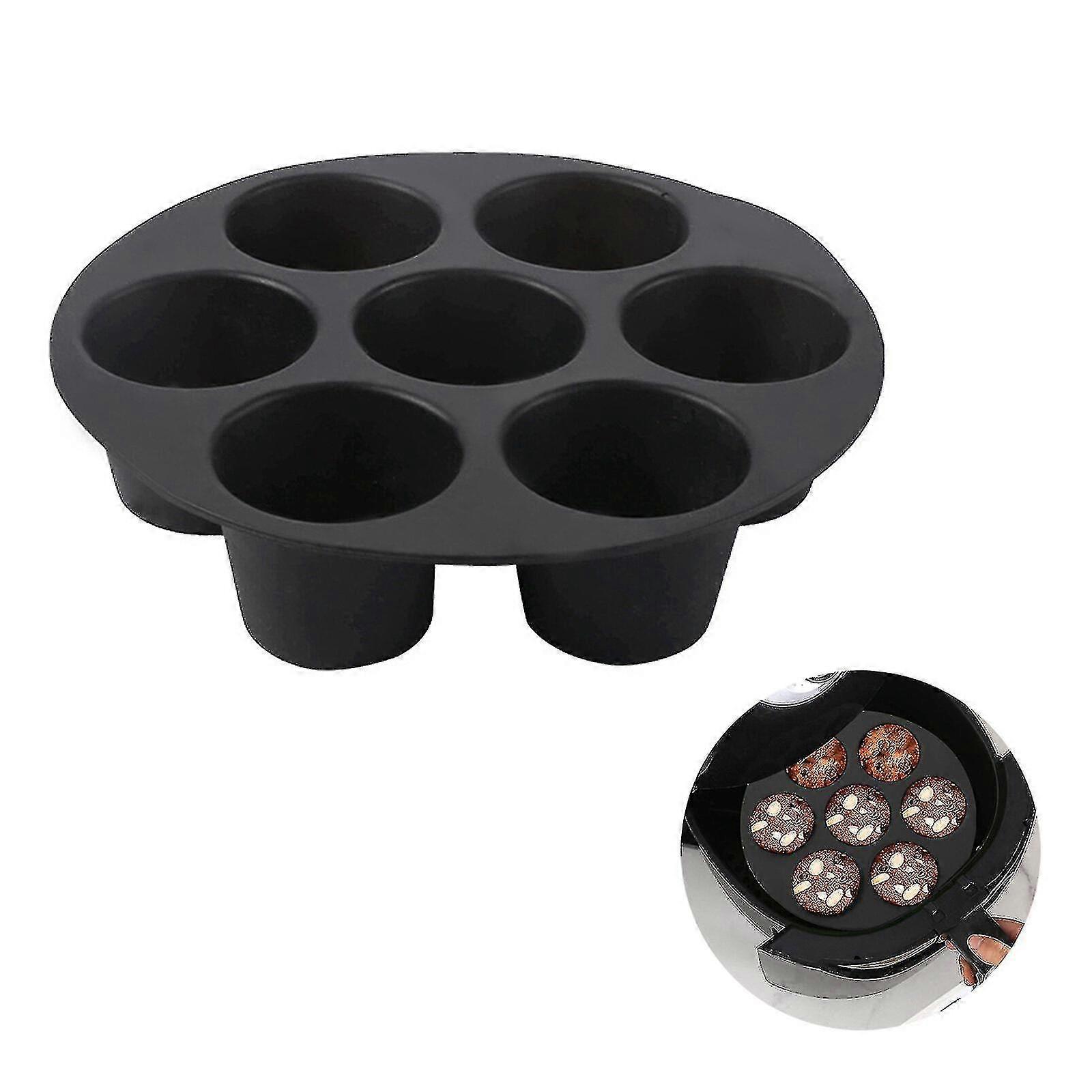 Silicone Cupcake Pan, Non-stick Muffin Tin For Air Fryer And Oven, Bpa Free (black, 7 Cups) 18x4cm