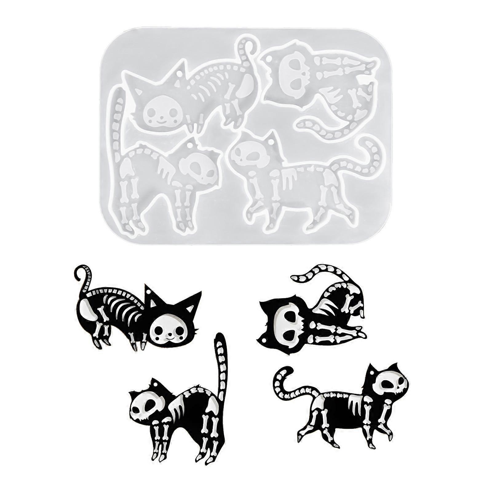 Food Grade Silicone Skull Cats Mould Halloween Crafting Tool for Resin Keychains Pendants Decorations Easy Demolding Multicolor