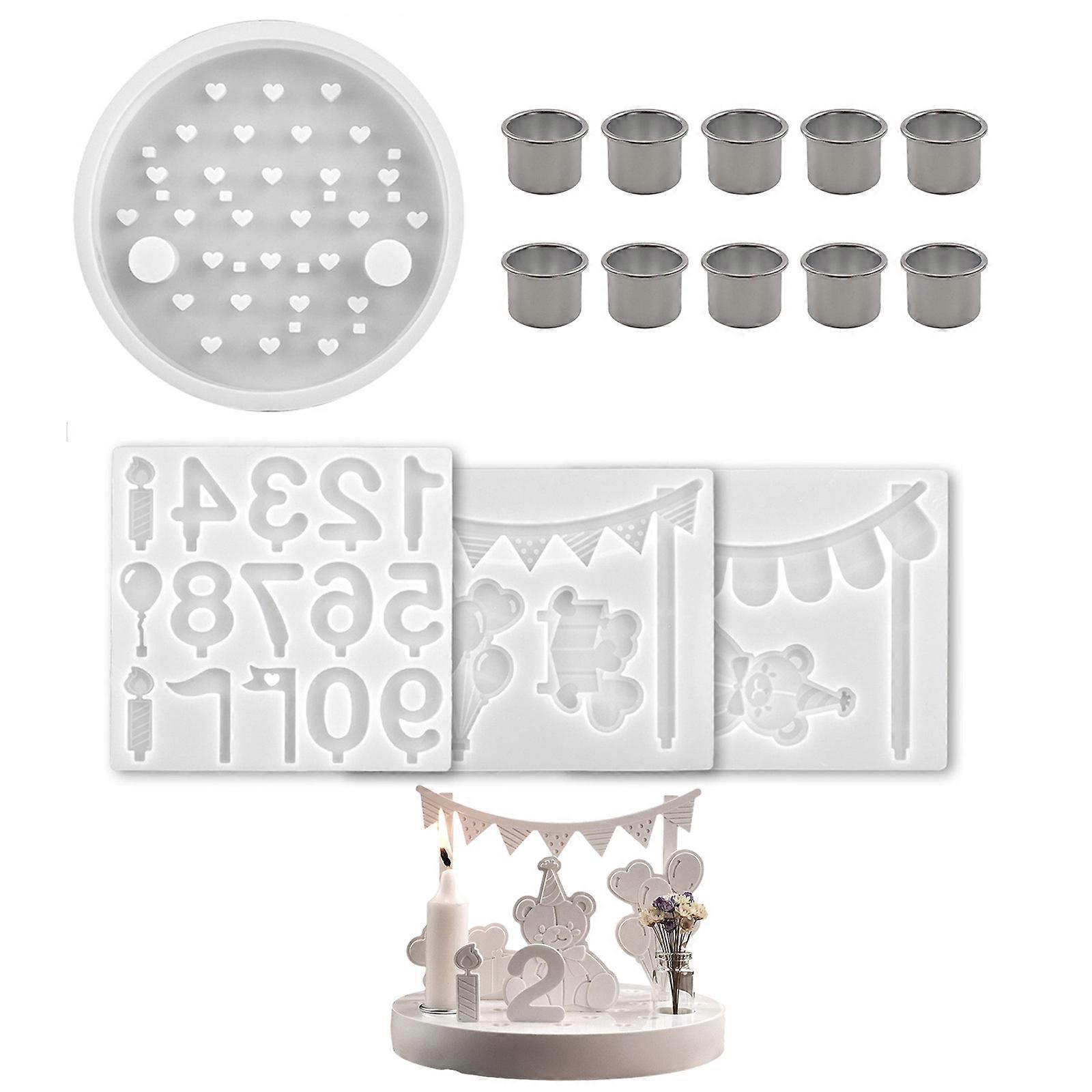 Flexible Silicone Crafting Mold Bear Shaped Candle Stand Maker Birthday Gift Creation Tool Resin Art Accessories Multicolor
