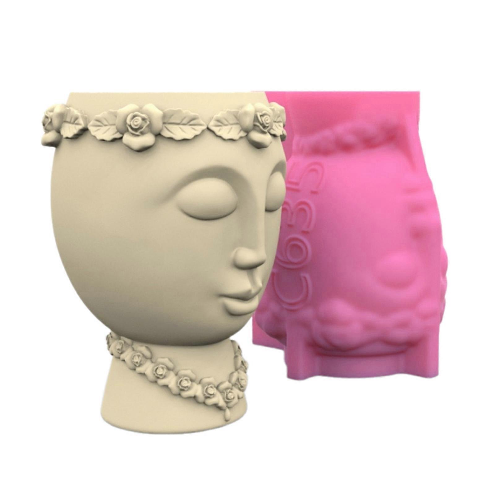 Flower Vase Silicone Mold DIY Crafting Tool Face Shaped Succulent Vase Molds Concrete Silicone Mold for DIY Flowerpot Multicolor