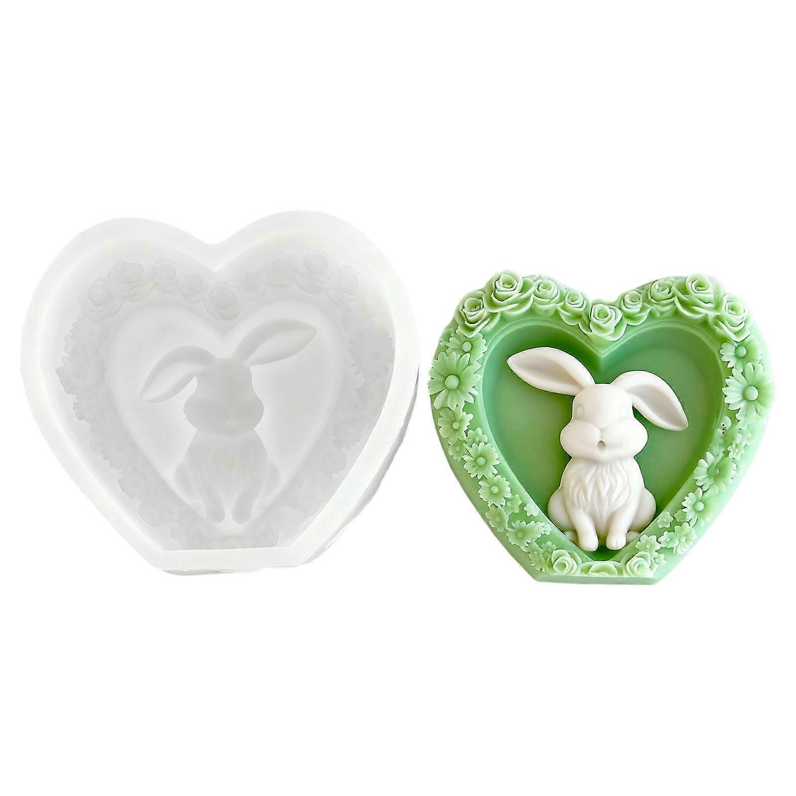 Rabbit Heart Shaped Silicone Candle Mold Multpurpose Silicone Mould Baking Tool for Candle Soap Chocolate and ResinArt Multicolor