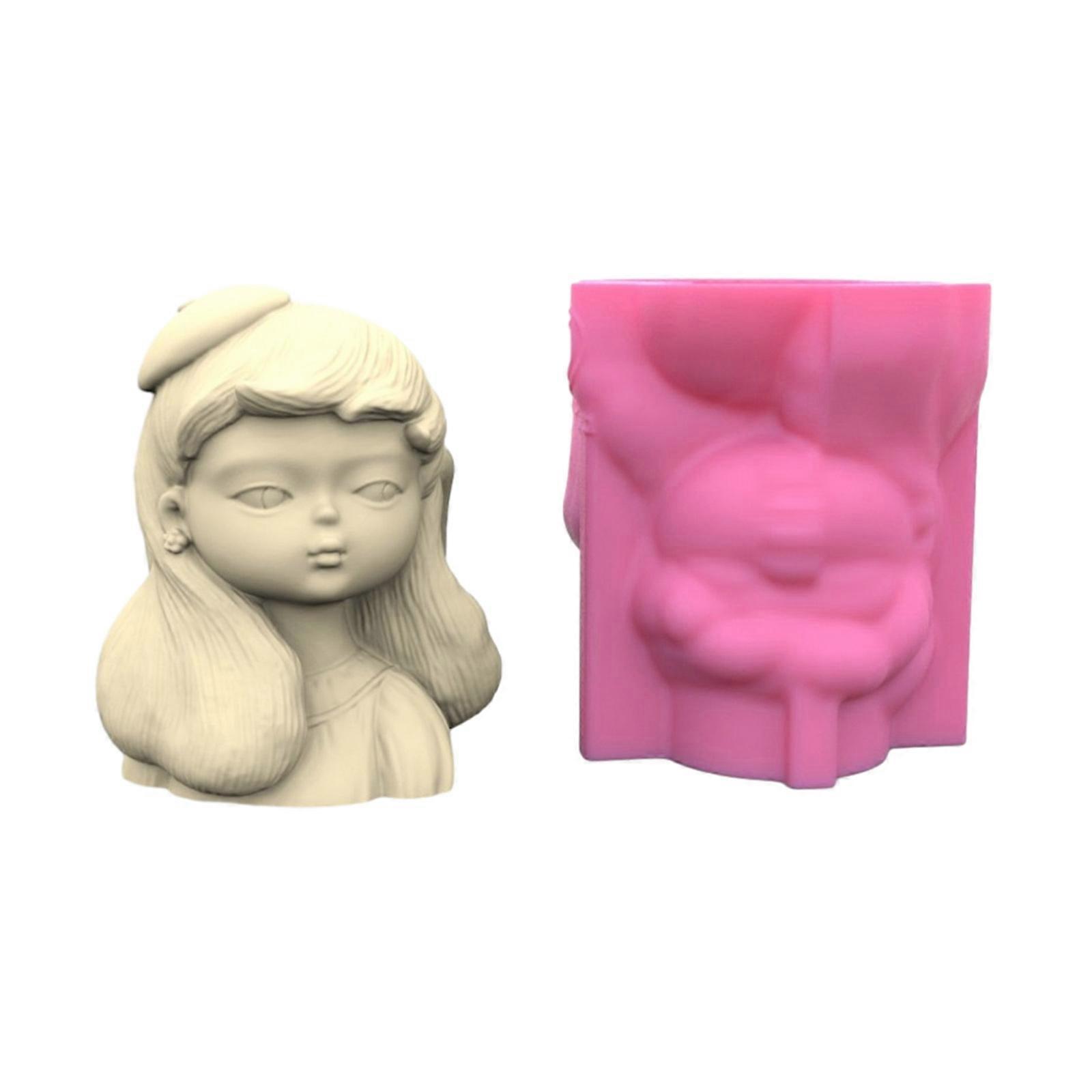 Silicone Mold for Concrete Flower Pot Long Hair Girl Shape Planter Mold Pen Holder Container Mold DIY Succulent Pot Tool