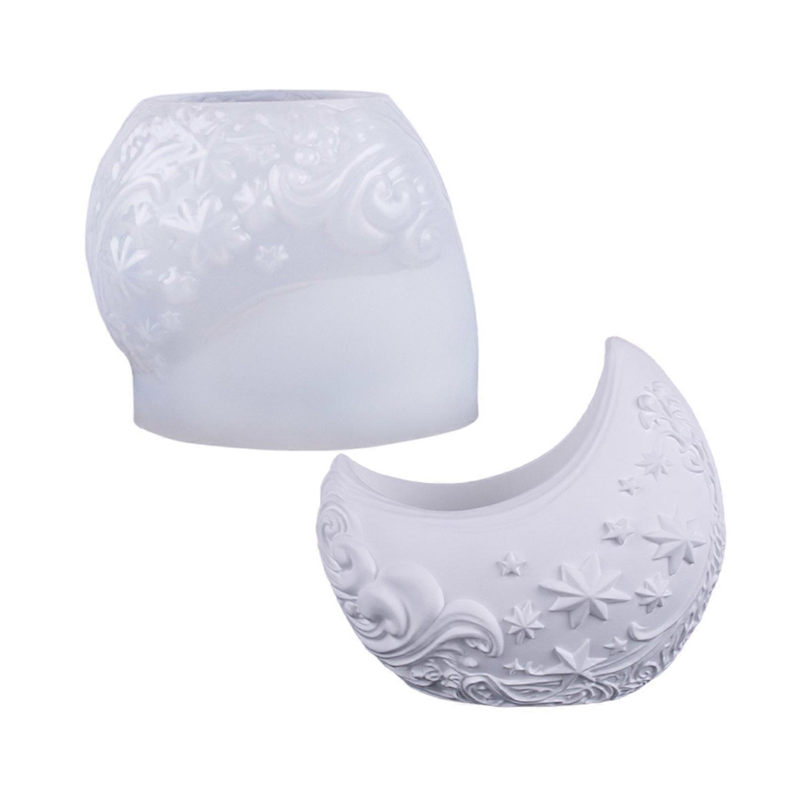 Silicone Moon Planter Mold For Resin Crafts With Embossed Floral Easy Release Succulent Plant Container Mould Multicolor