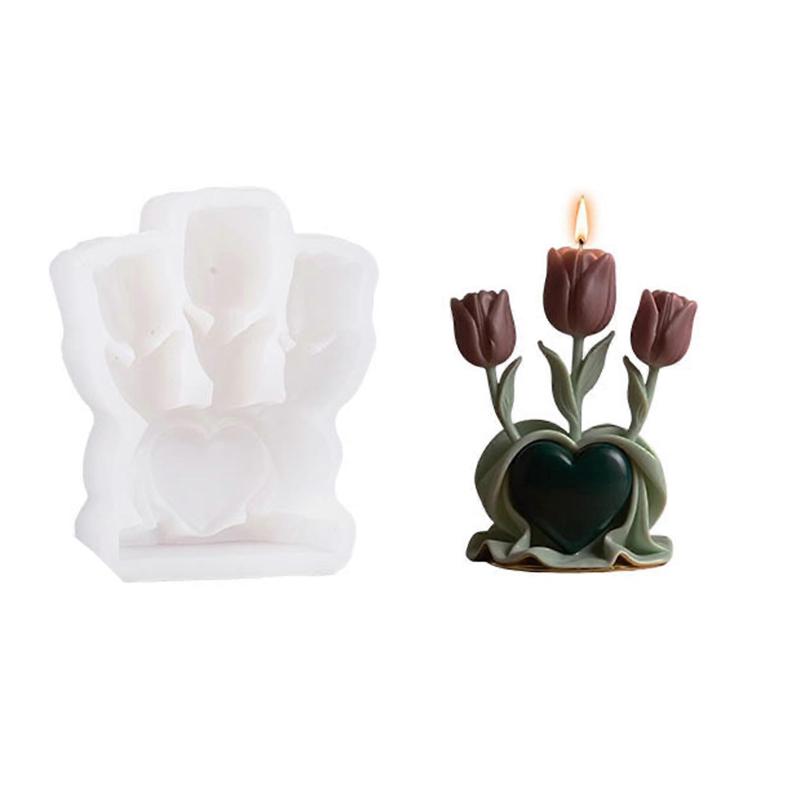Heart Tulips Silicones Mould Flowers Scented Candle Molds Casting Mould Epoxy Resin Molds Soap Molds Craft Supplies Multicolor