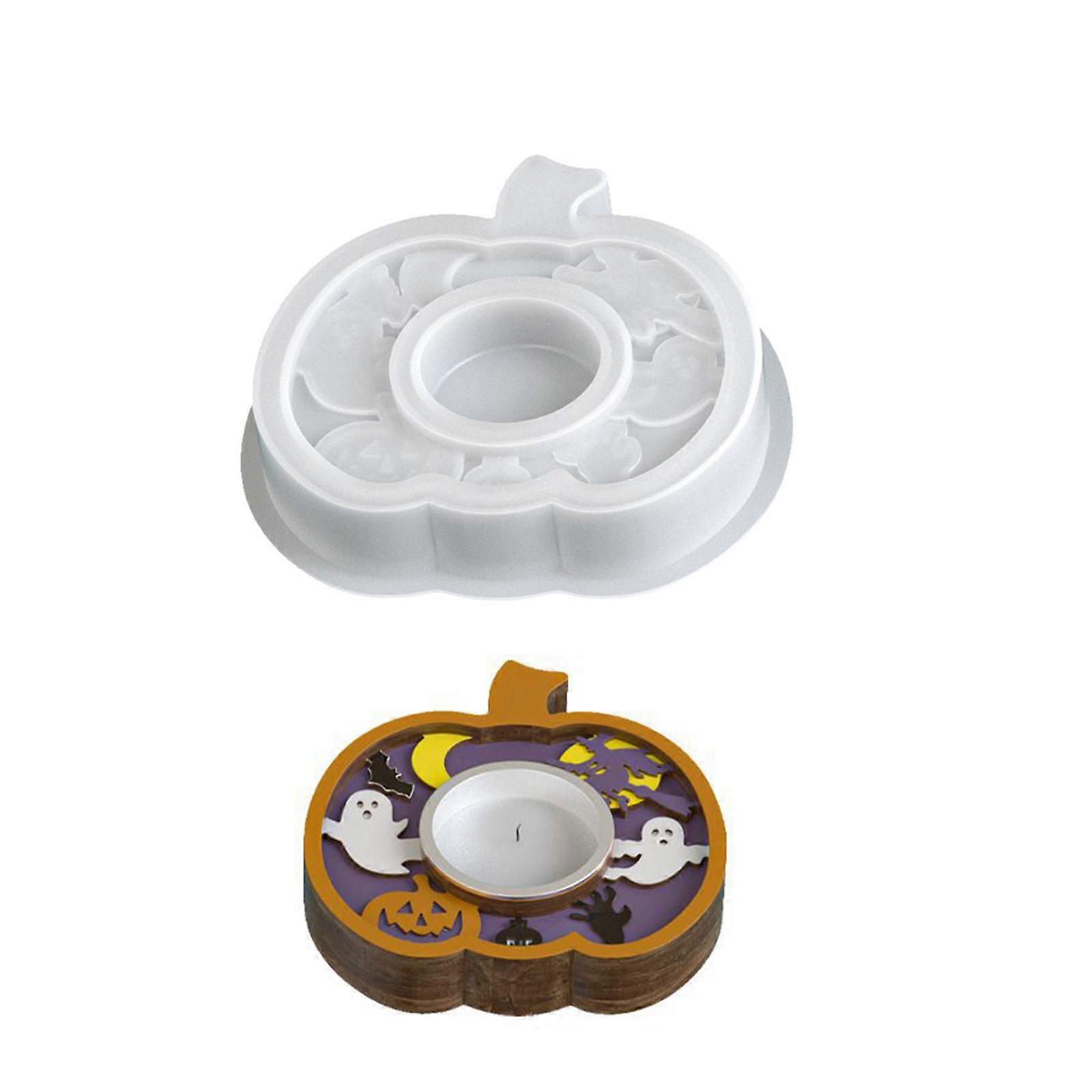Reusable Silicone Crafting Mold For Festive Candle Base Featuring Halloween Pumpkin Bat And Specters Patterns Multicolor