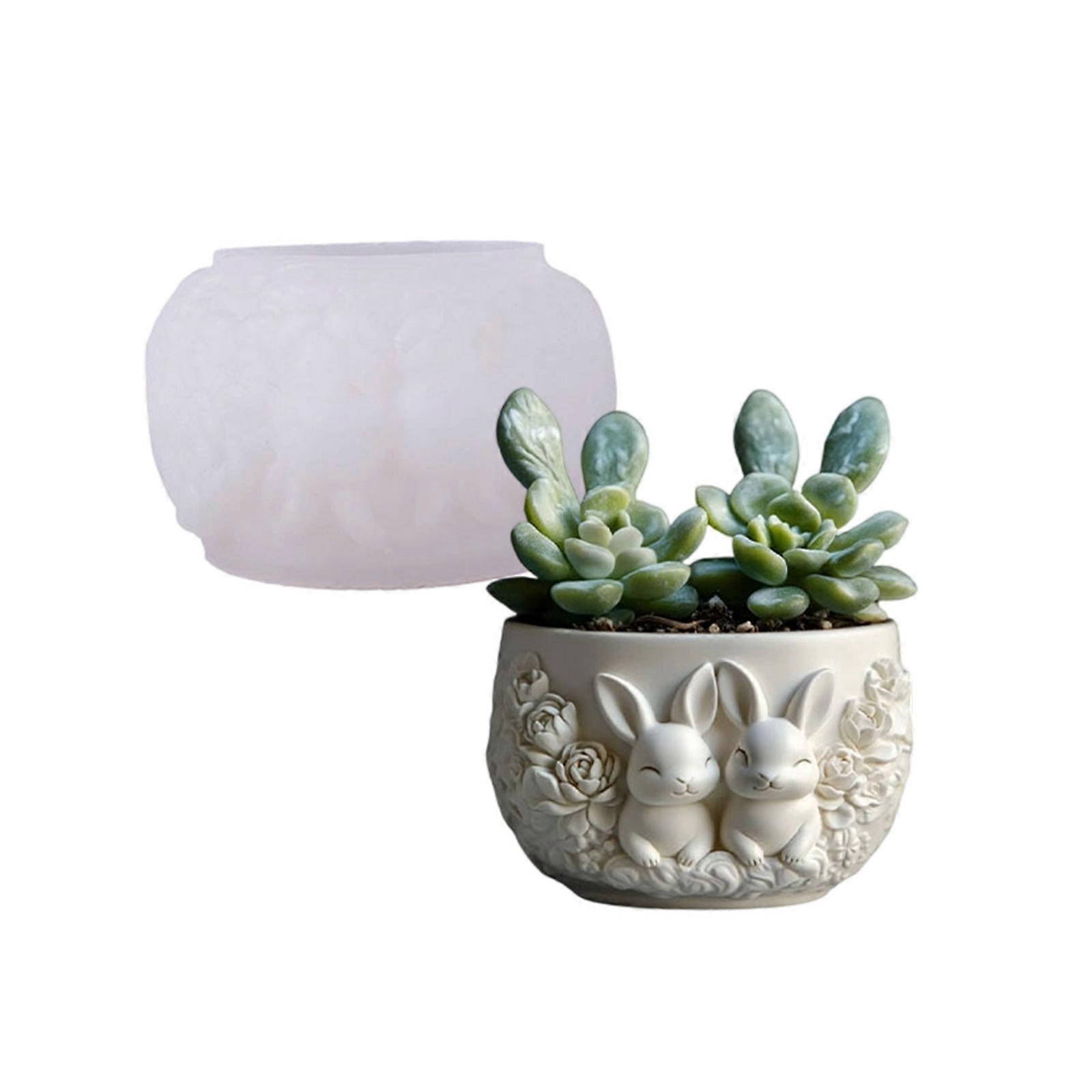 DIY Silicone Mold For Holiday Gifts Rabbit Embossed Planter Jewelry Making Art Supplies Resin Cement Crafting With Clear Details Multicolor