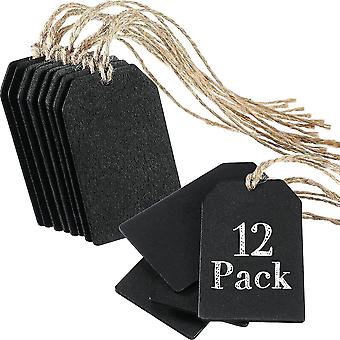 תגי לוח גיר תלויים עץ מיני לוח גיר שלטים לוח גיר עץ תגיות, תוויות לוח גיר תלויות, תגי מחיר אידיאליים, תגי הודעה, שחור
