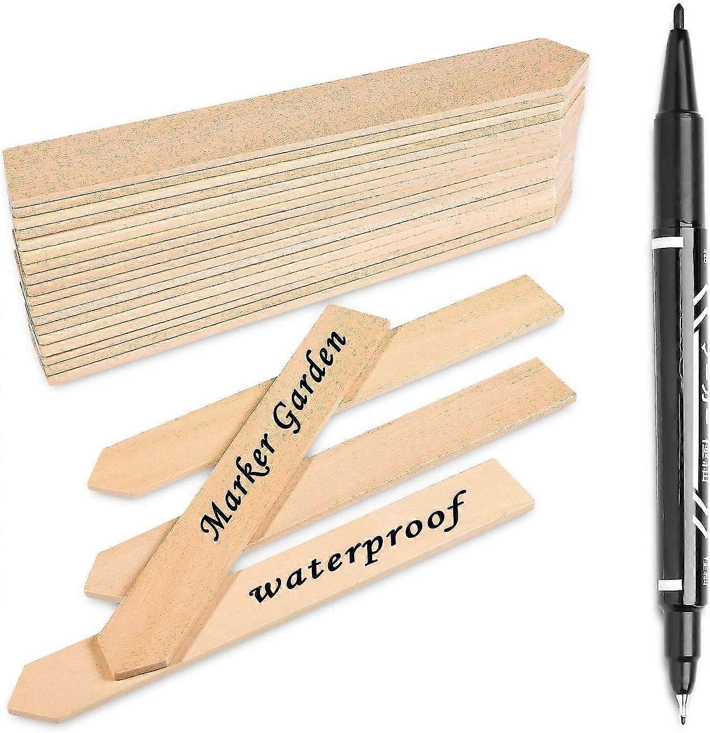 50Pcs Wooden Plant Tags With Marker Pen, Pointed Plant Sign Waterproof Eco-Friendly Garden Markers