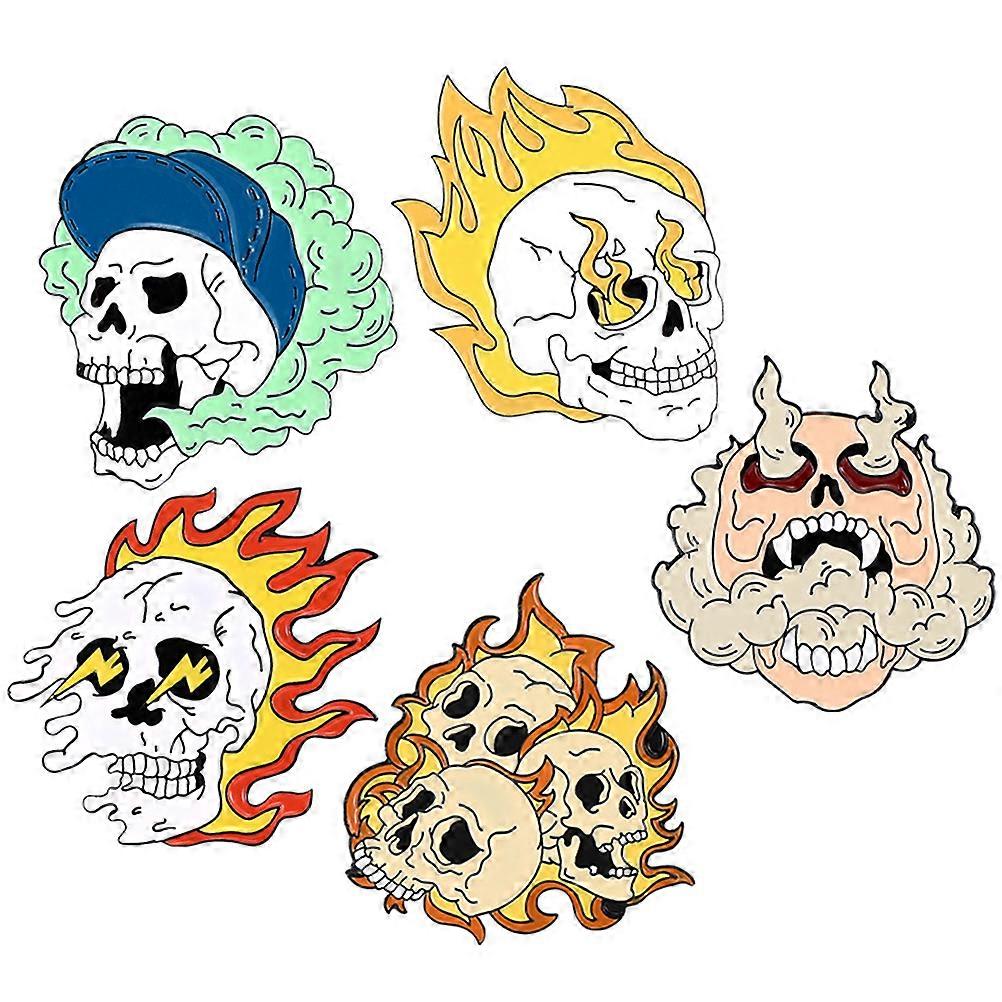 Collar Badge Brooches Metal Skull Brooches For Clothes And Bags 5Pcs