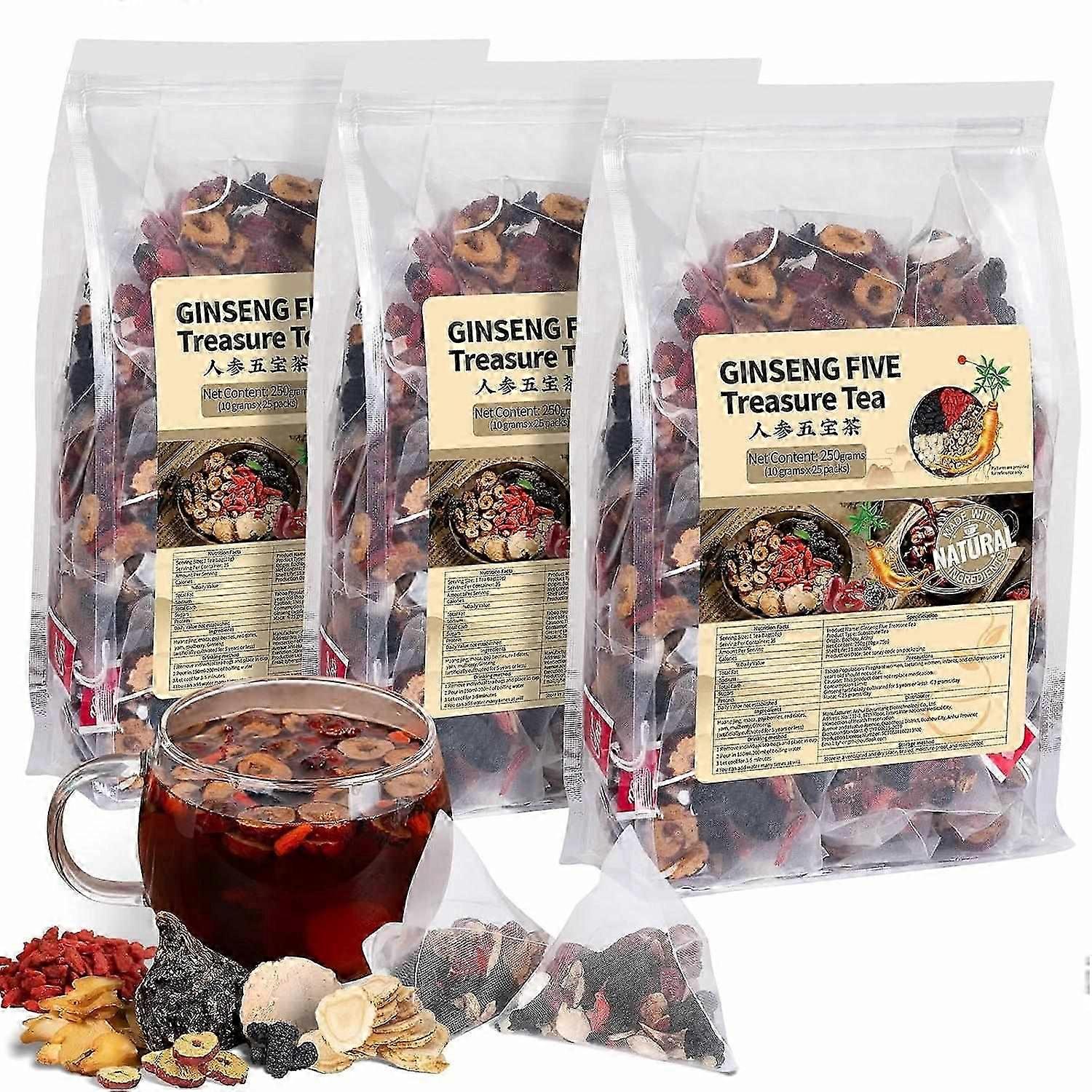 Ginseng Five Treasures Tea Kidney Tonifying Tea is made from natural organic precious medicinal herb