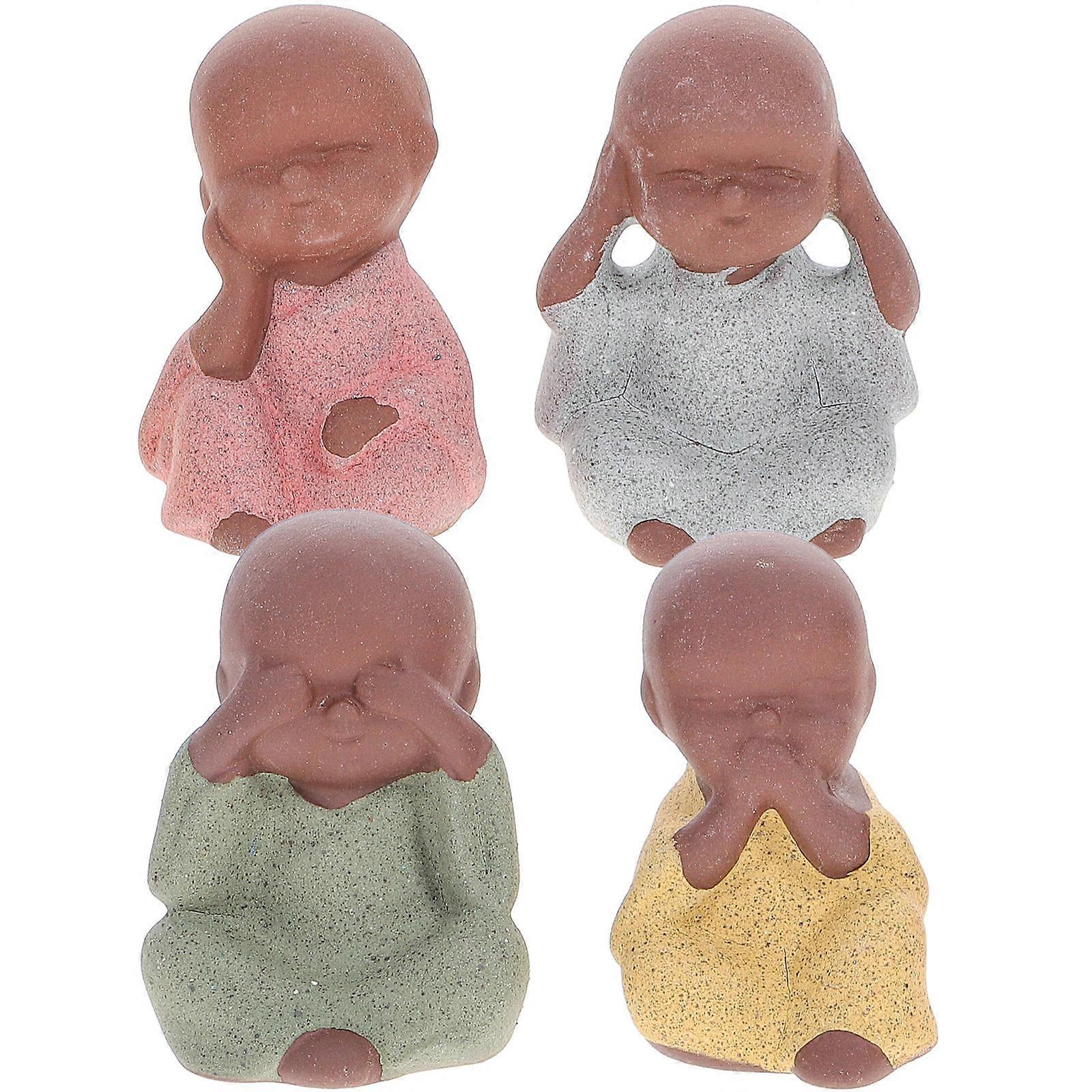 Ceramic Tea Pet Creative Monk Ornaments For Home Decoration Blue 4.5x3.5cm Decorative Accessory 4Pcs