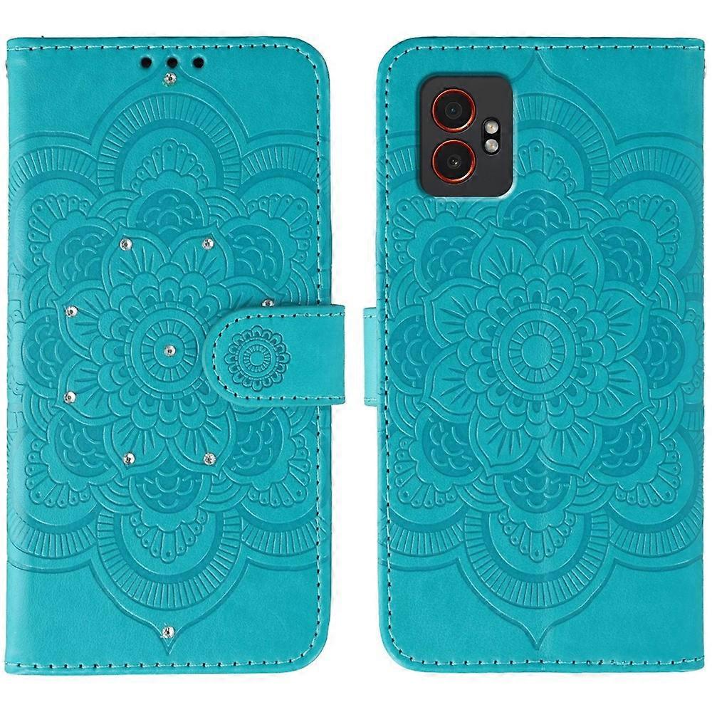 Compatible For Samsung Galaxy XCover7 Pro Case Rhinestone Decor PU Leather Mandala Imprinted Design Phone Cover with Wrist Strap