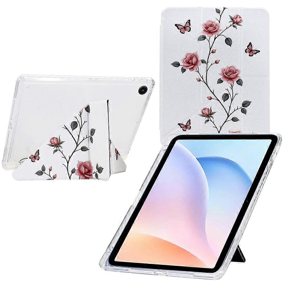 Compatible For Samsung Galaxy Tab A9+ Case Y-Fold Stand Pattern Print Leather + Clear Acrylic Tablet Cover with Pencil Holder