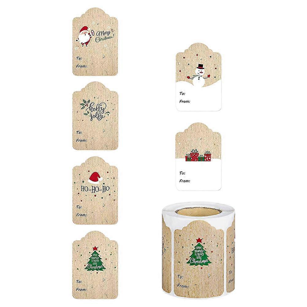 Christmas Gift Label Kraft Paper for Festive Use 4 Rolls Self-Adhesive