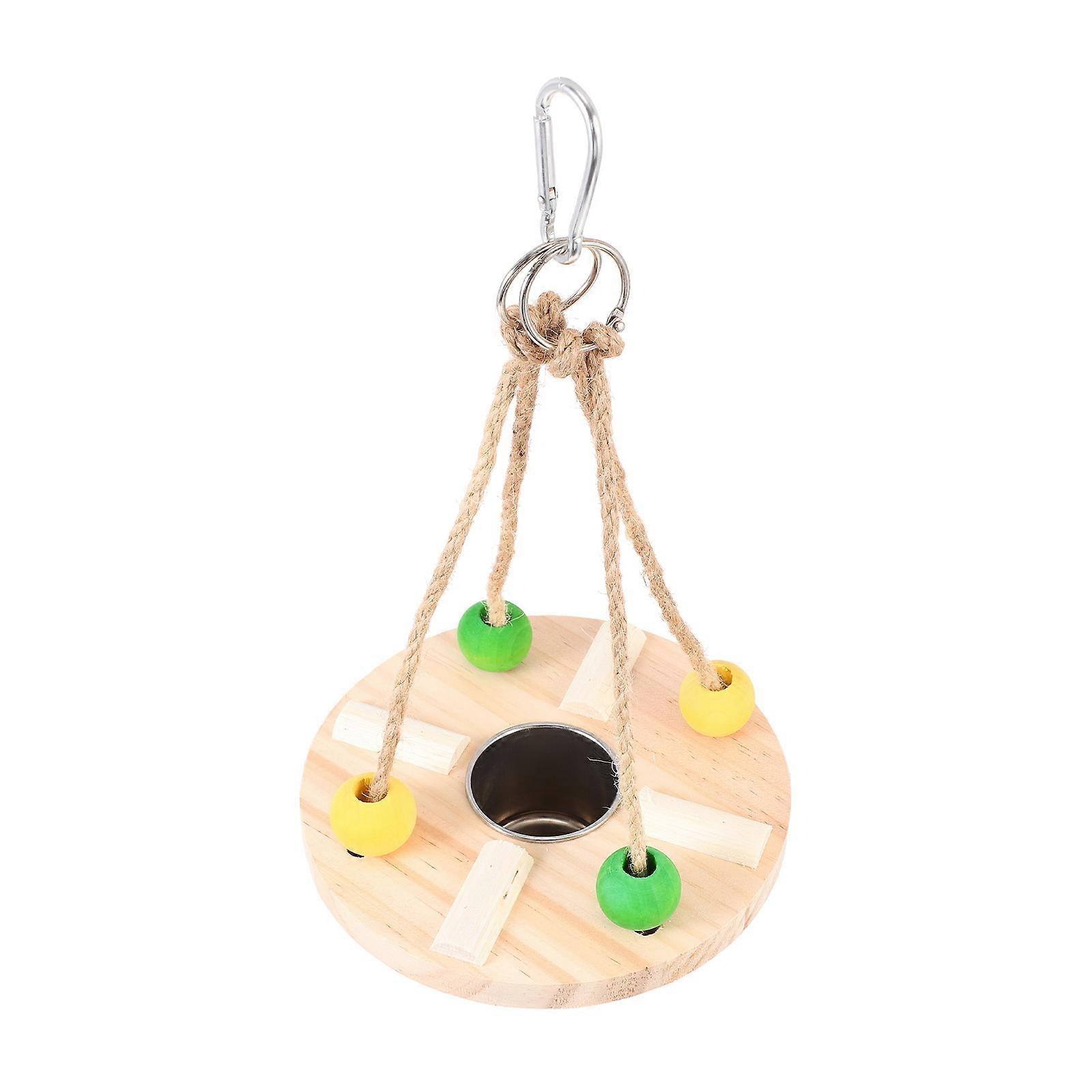 Wooden Parrots Feeding Cup Hanging Birds Food Container Parrot Standing Swing