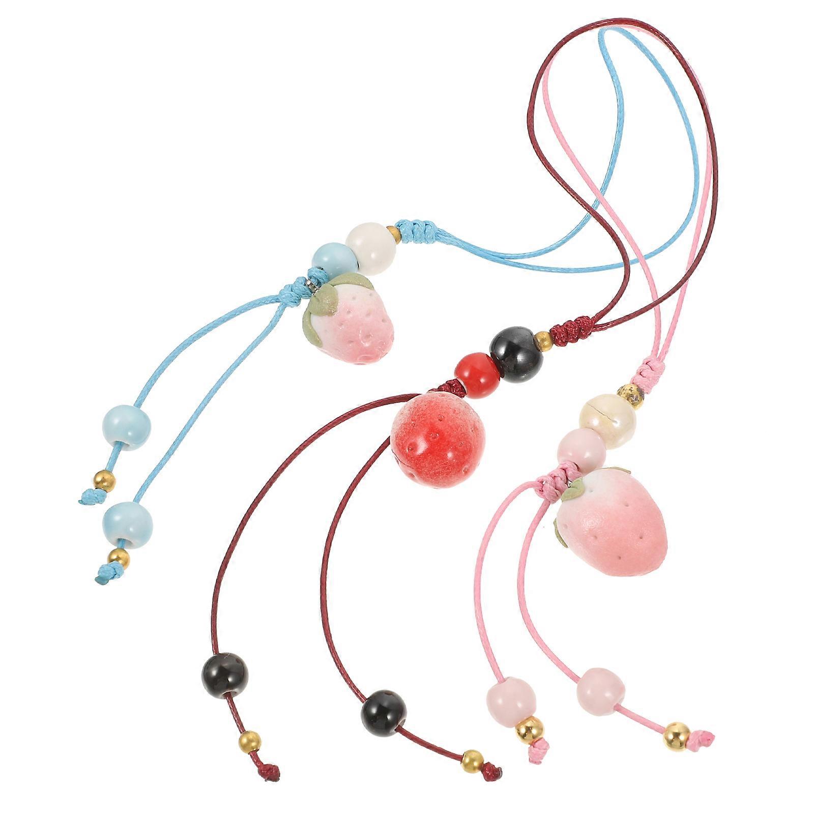 Strawberry Charm Hanging Decoration Handbag Accessory Car Rearview Mirror Ornament Assorted Color 12X2CM 3Pcs