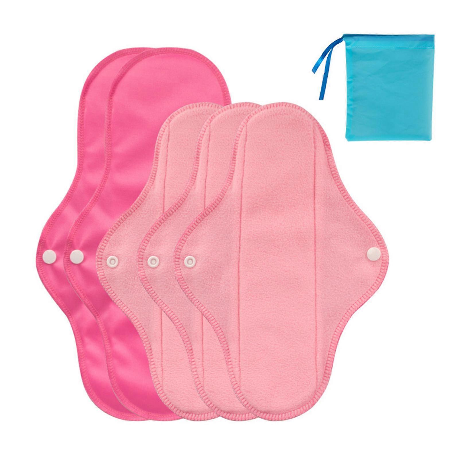 5 Piece Women's Soft Cotton Sanitary Pad With Antibacteria Technology Reusable Washable Menstrual Napkin Underwear Liner Pink