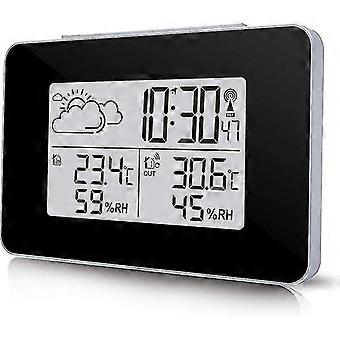 תחנת מזג אוויר אלחוטית, שעון מזג אוויר רב תכליתי דיגיטלי עם מזג אוויר חיצוני / טמפרטורה / לחות / תאורה אחורית / אזעקת שינה פונקציה אחת (שחור)