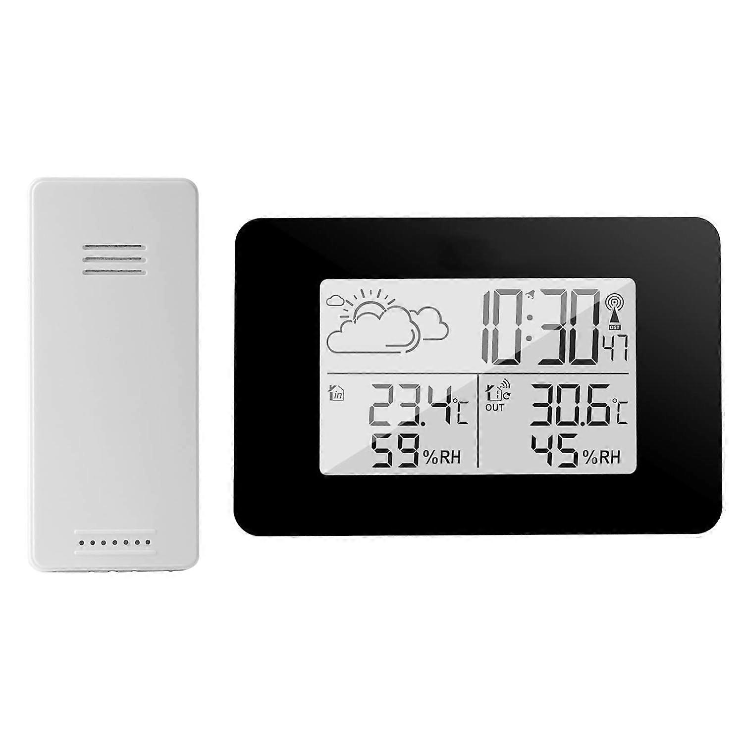 Wireless Radio Weather Station with Outdoor Sensor, Indoor and Outdoor Digital Thermometer and Hygrometer - Weather Forecast, Alarm Clock, Backlight f