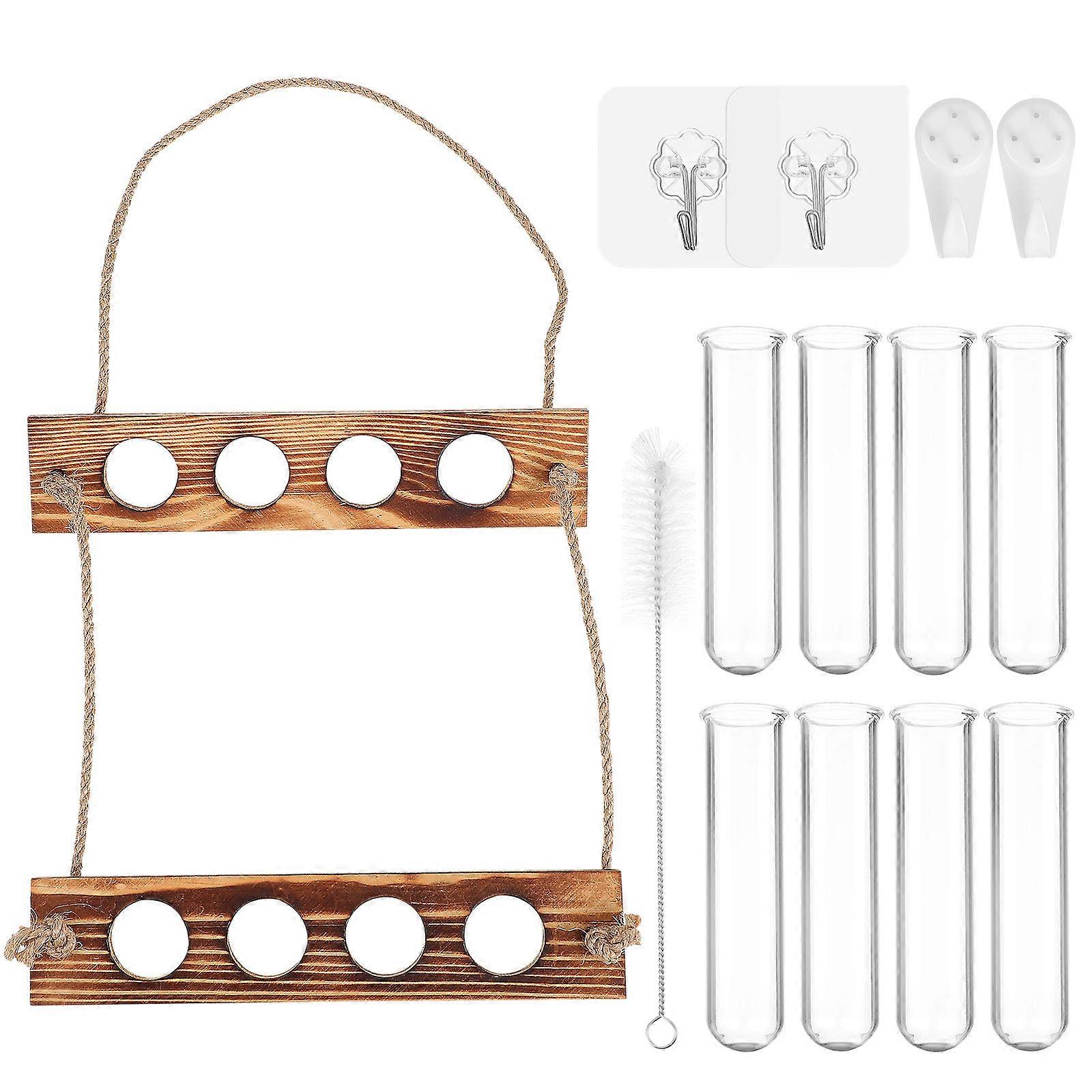 Wall Hanging Propagation Station with 4Pcs Glass Test Tubes and Wooden Rack