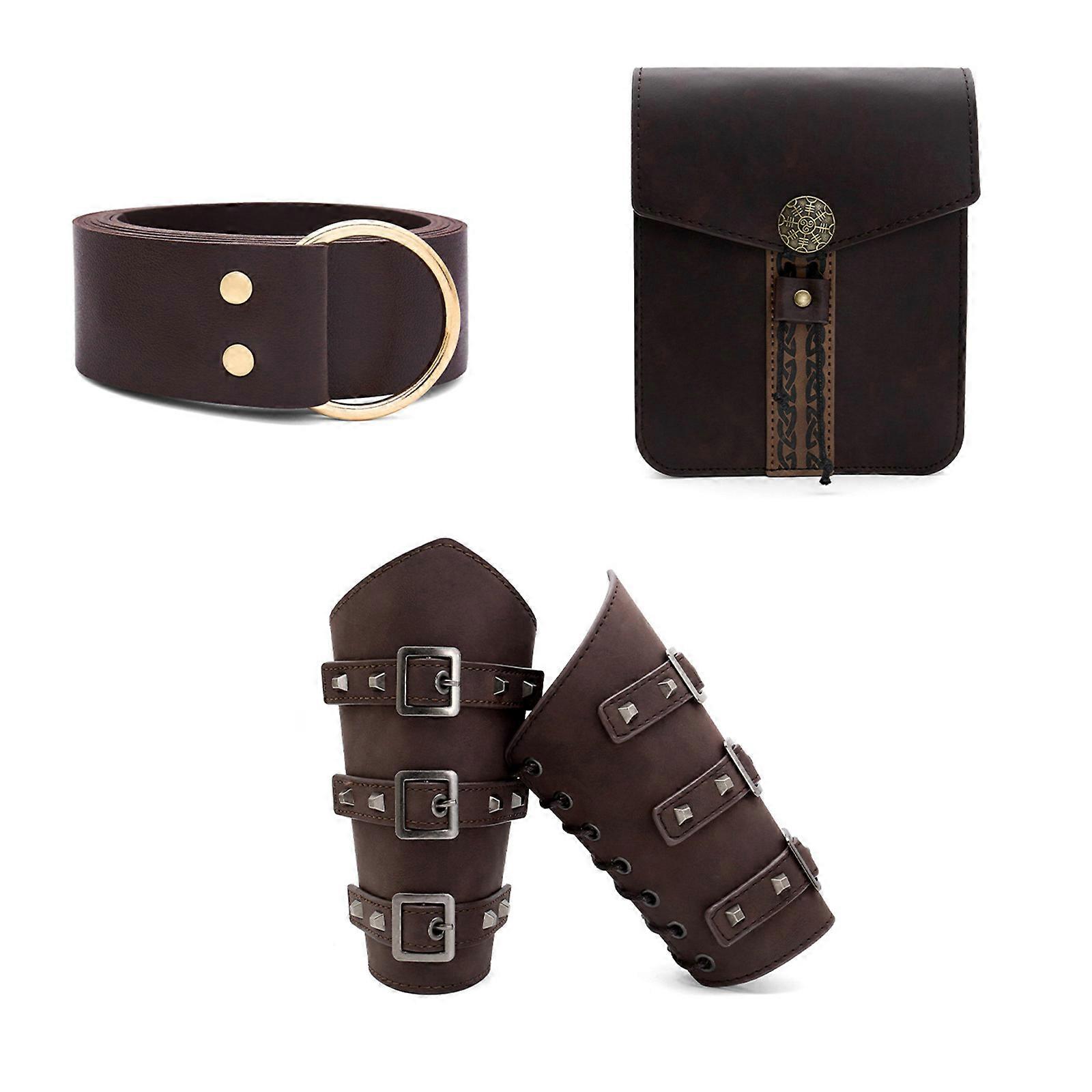 Medievals Warriour Costumes Renaissances Waist Package Bracers Leather Belt Halloween Party Cosplay Costumes for Adults brown