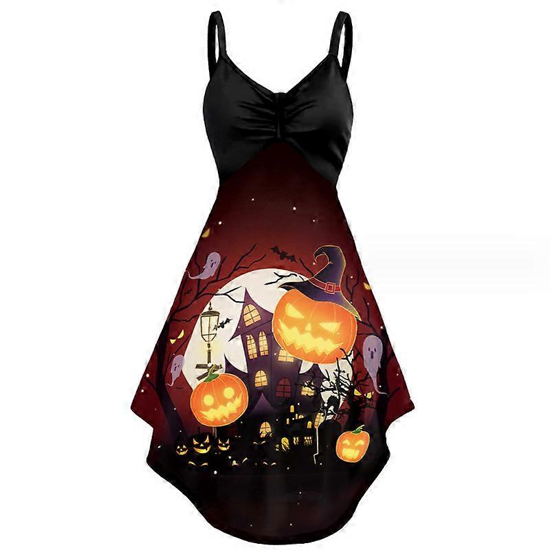 Halloween Costumes for Women Skull Printed Strap Dresses Casual Fashion Pattern Sleeveless Dress Swing Dress