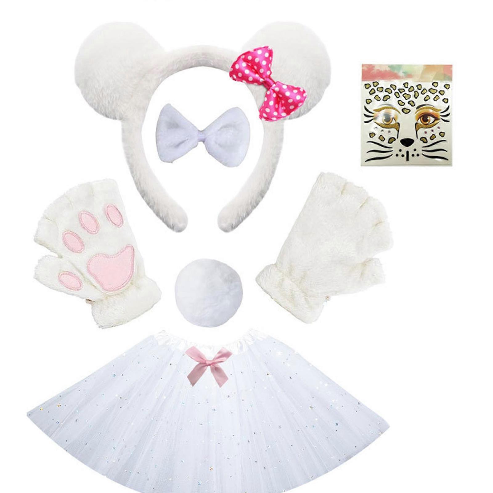 Animal Panda Costumes Panda Ears Headband Tail Animal Fancy Costume Kit Halloween Cosplay Party Accessories for Kids White Panda