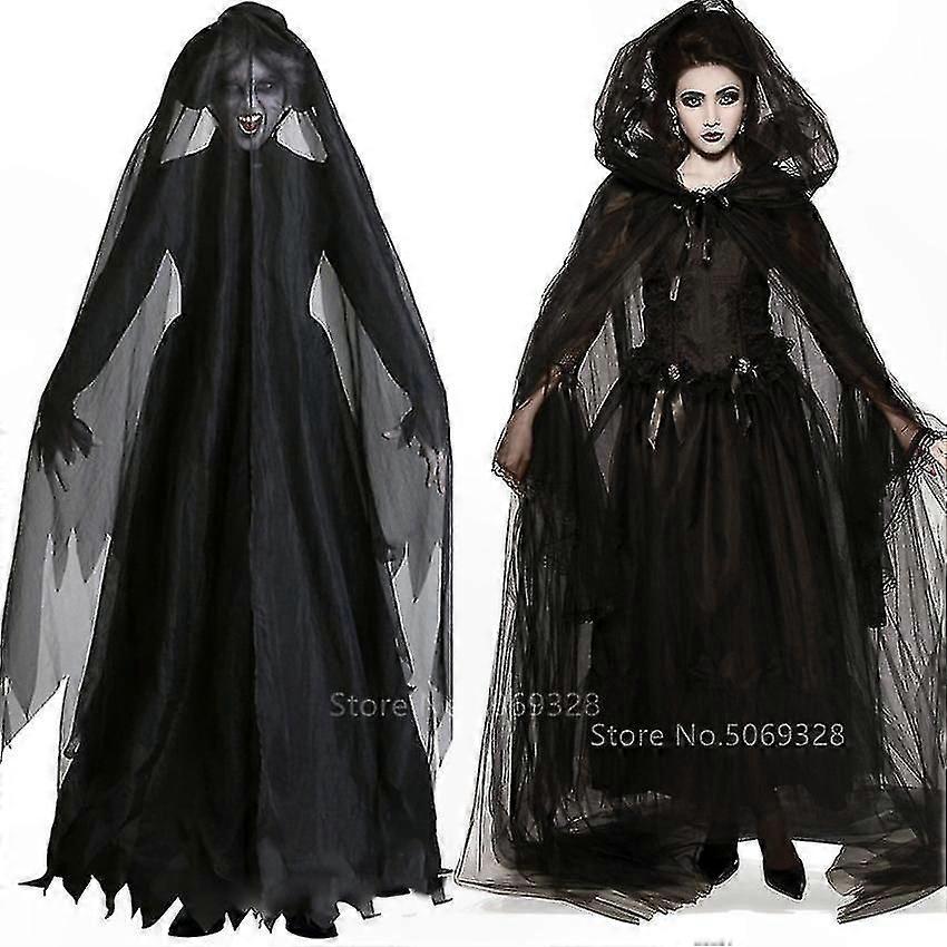 Spooky Halloween Costume for Women - Scary Ghost, Zombie, Vampire Dress with Medieval Hooded Cape and Colak Accessory - Day of the Dead Inspired Sexy