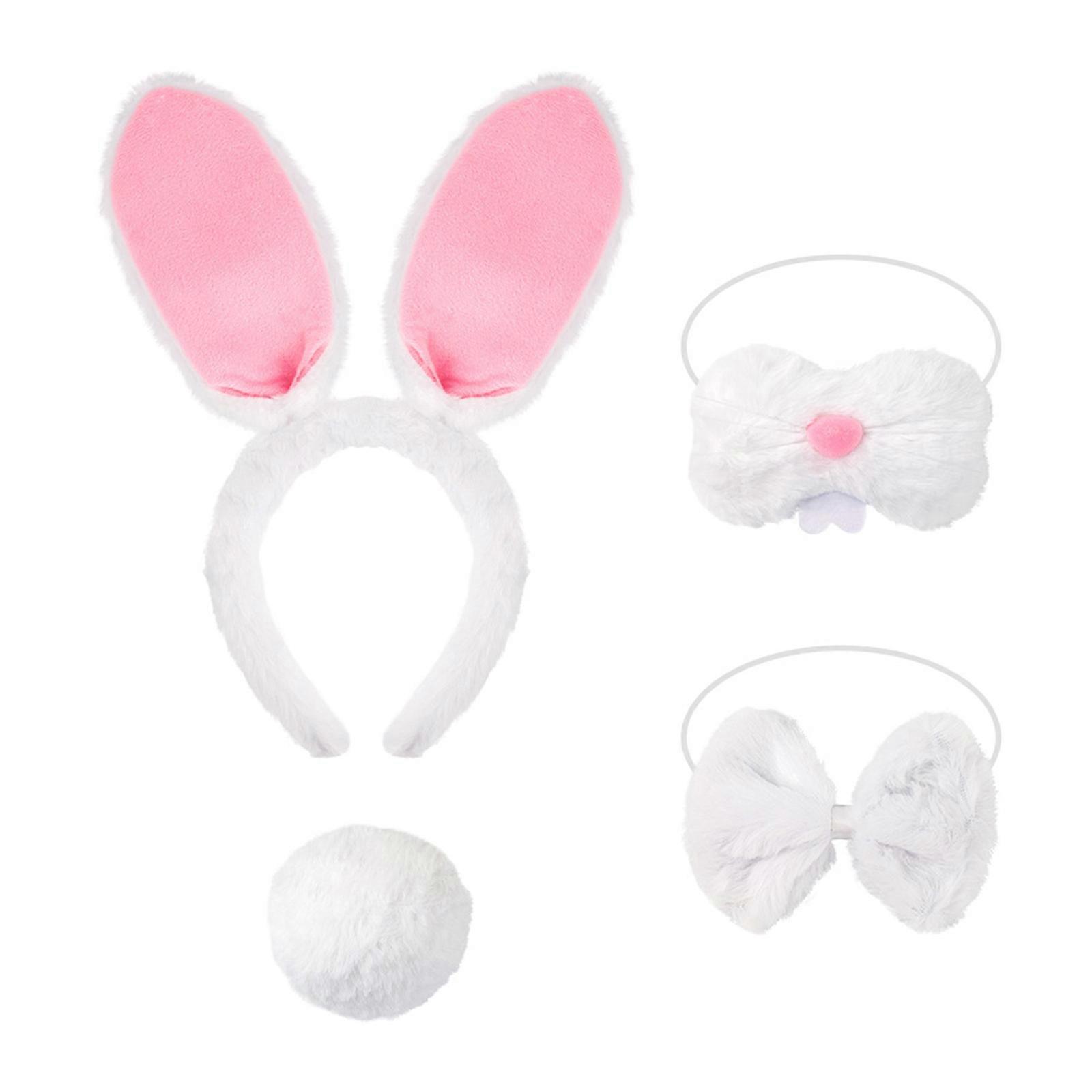 Halloween Cosplay Costume Easter Bunnies Costume Accessories with Rabbit Ears Headband Bowtie Nose Bunnies Tail Gifts White