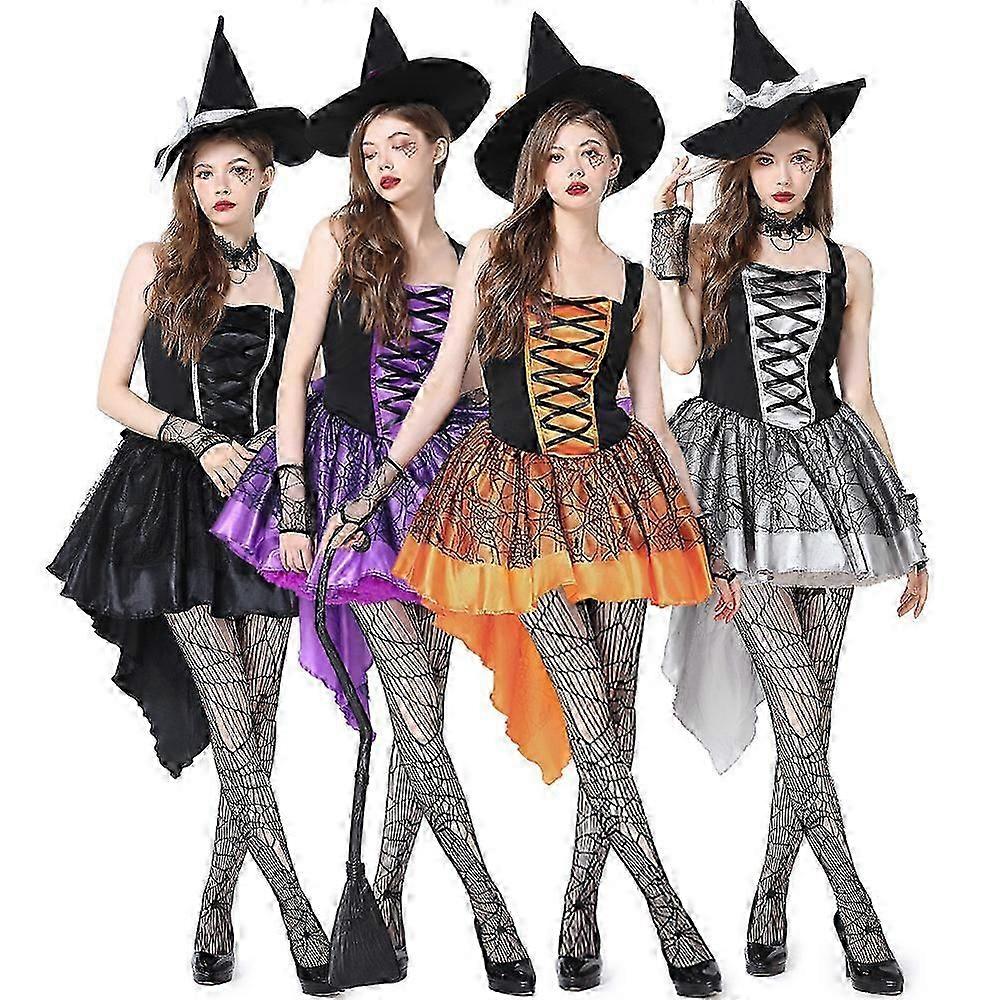 Witch Costume for Women Sexy Halloween Cosplay Outfits Witch Hat White Lace Wristbands Magician High-Low Dress