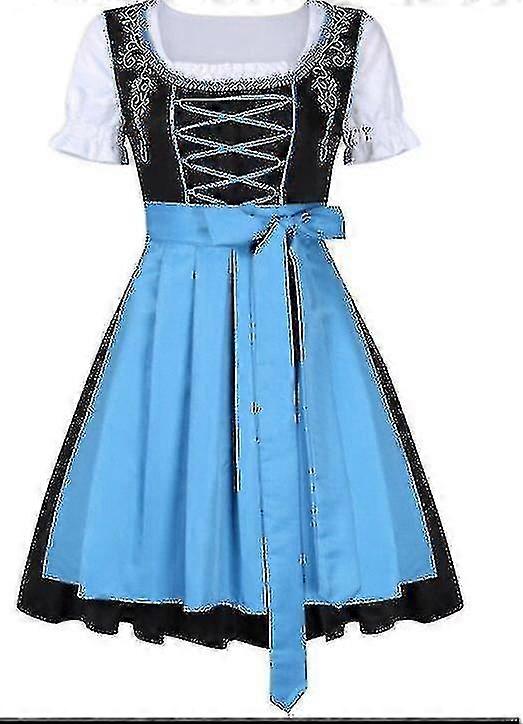 German Wench Beer Maid Costume Bavarian Oktoberfest Dirndl Dress+top+apron