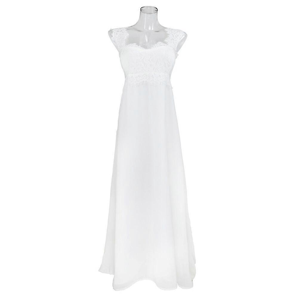 Lace Patchwork Ground Dress Woman Elegant Dress Bridal Long Skirt Evening Dress for Party Wedding Photo (White Size 5XL)