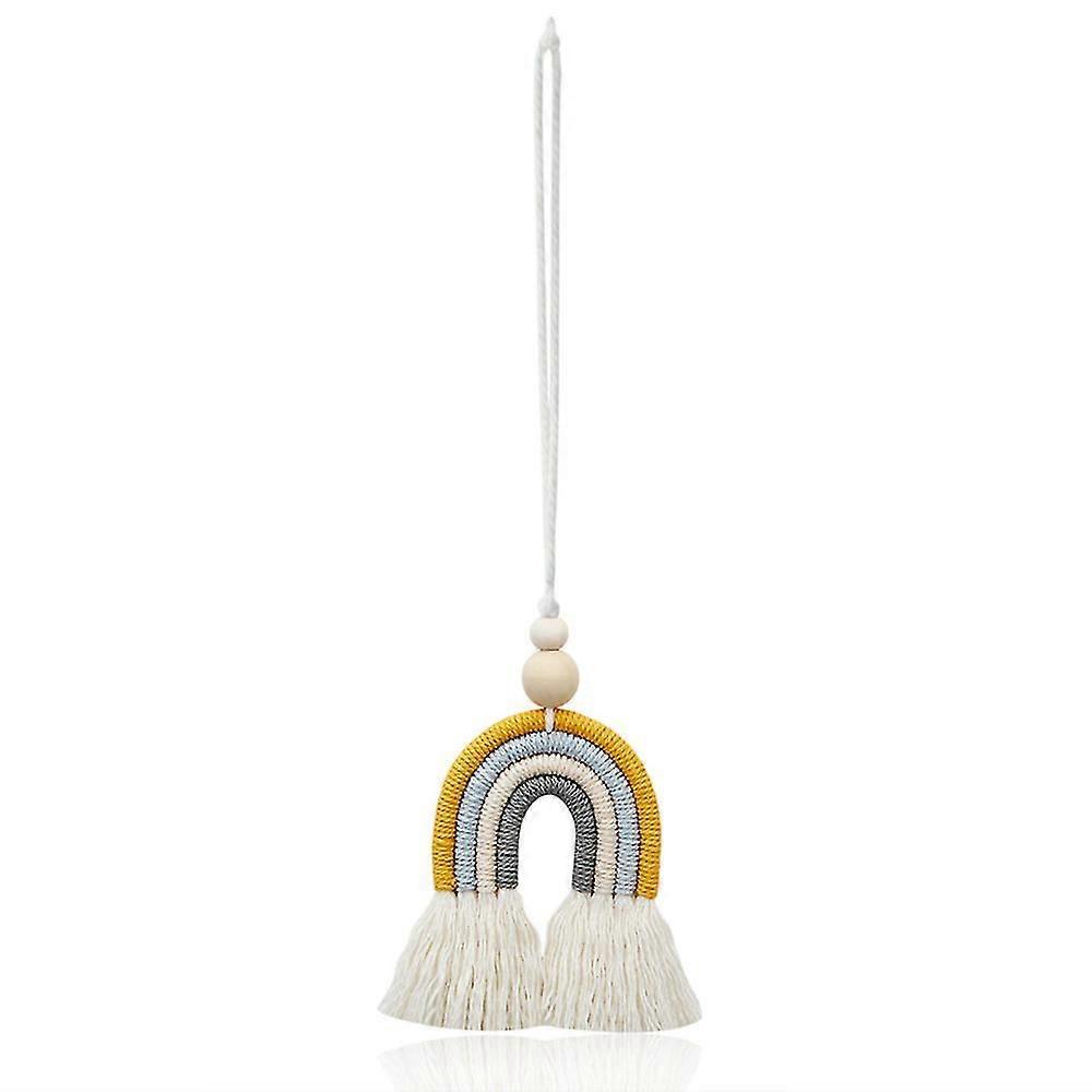 Lace Rainbow Handmade Car Ornament Colorful Essential Oil Car Diffuser Mirror Hanger With Wooden Beads For Home Wall Car Decoration 2 Pieces Colored