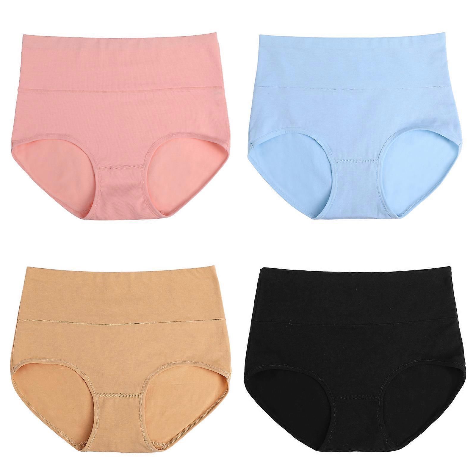 Underpants Briefs Women Underwear High Waisted Elastic Waistband Breathable 4Pcs