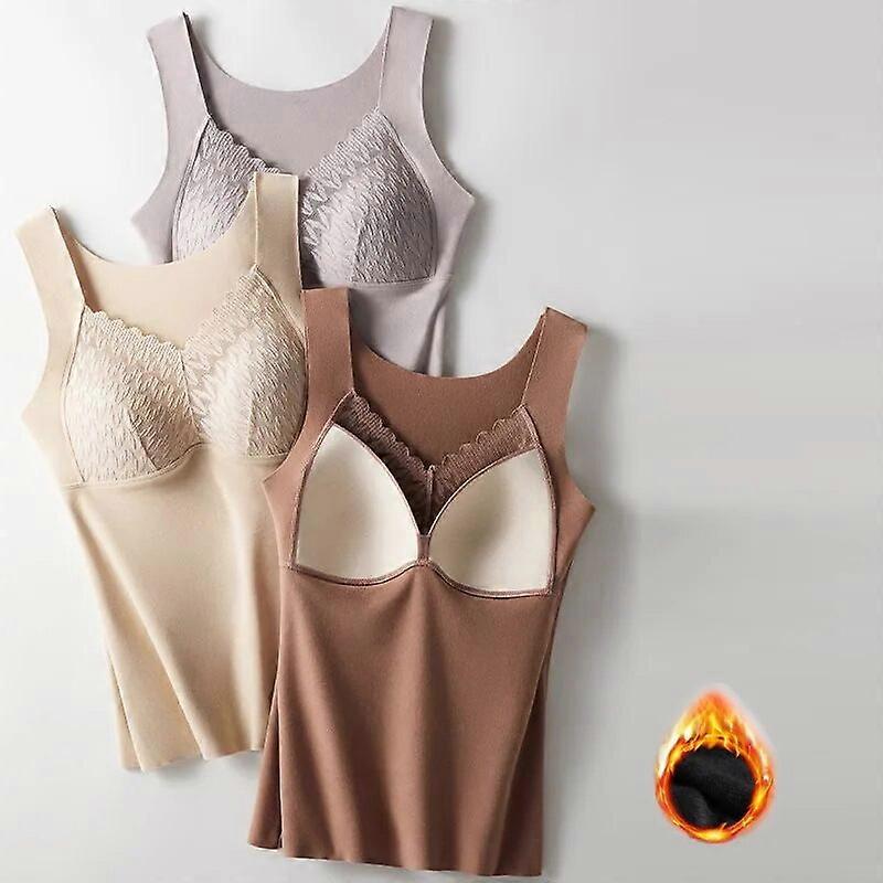 Thermal Underwear Velvet Vest Winter Womens Simple Solid with Chest Pad Camisole Slim Warm Sling Vest Female Thermal Underwear