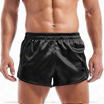 Satin Boxer Briefs for Men - Sexy Silk Lounge Shorts, Loose Split Sleep Pajama Bottoms