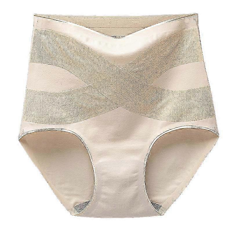 Seamless Women Cotton Panties High Waist Cross Tummy Control Underwear Girls Briefs Breathable Solid Color Underpants 25-26