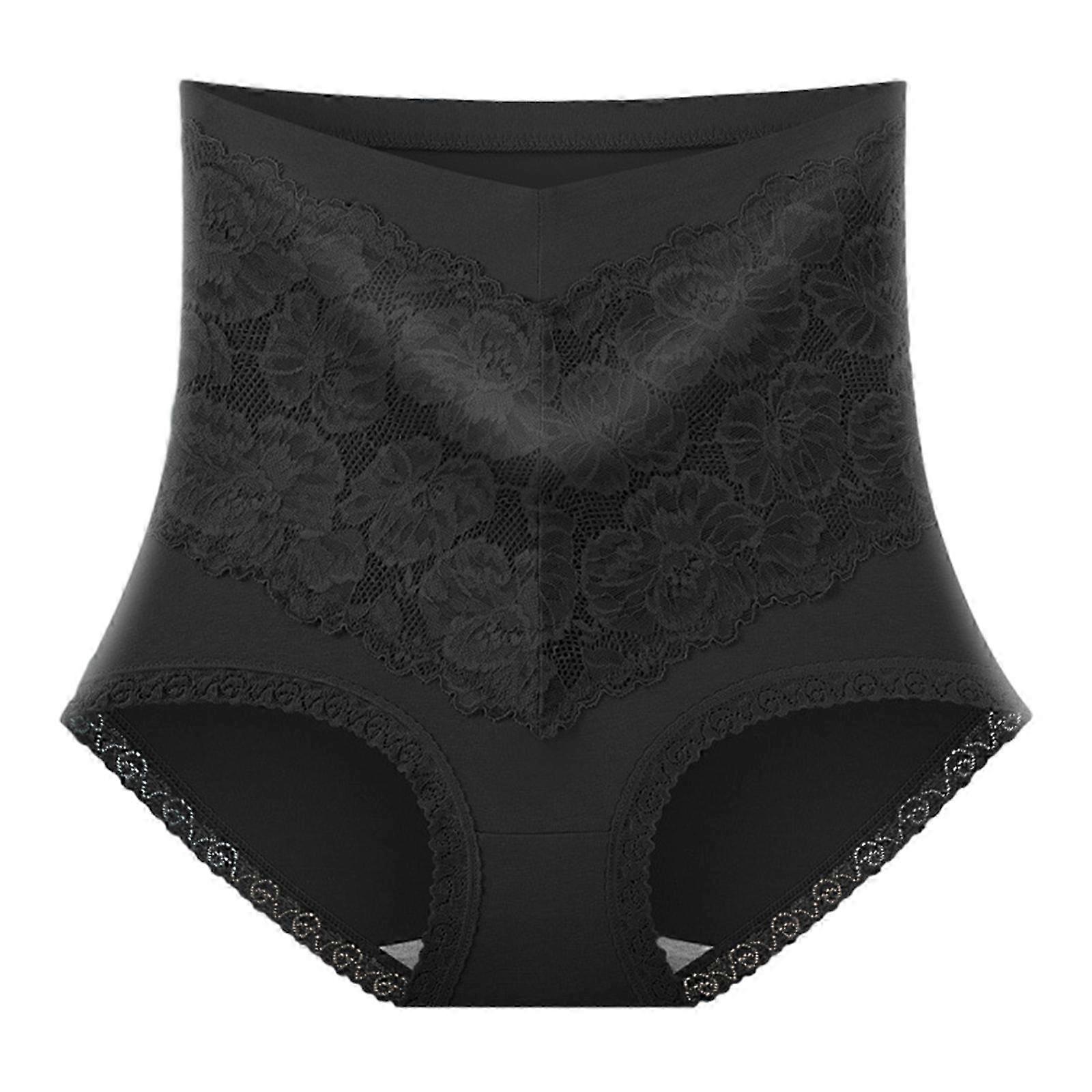 Breathable Cotton Underwear Panties for Women High Waist Floral Lace Splicing Panty Knickers Full Coverage Briefs light green XL