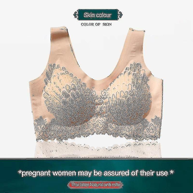 Thai Latex Underwear Seamless Bra Women Cooling Gathers Shock-proof Pad Wireless Soft Intimate Vest-style Lace Beauty Back